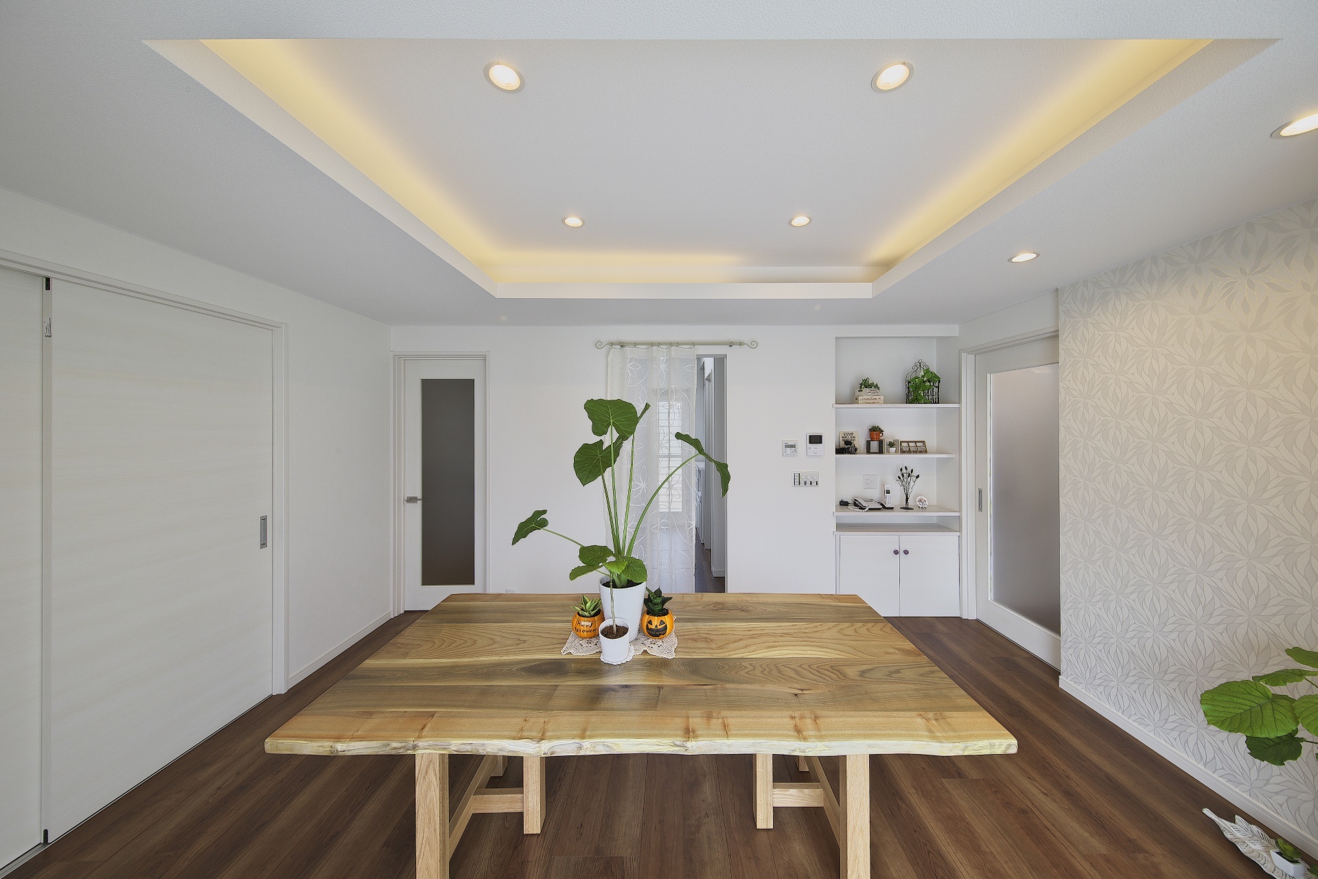A.リビングで広々と食事ができたり、DVDを観たりくつろぎができるところです。また夜ライトをつけるとまたまた素敵です。家族の笑顔が増えました。